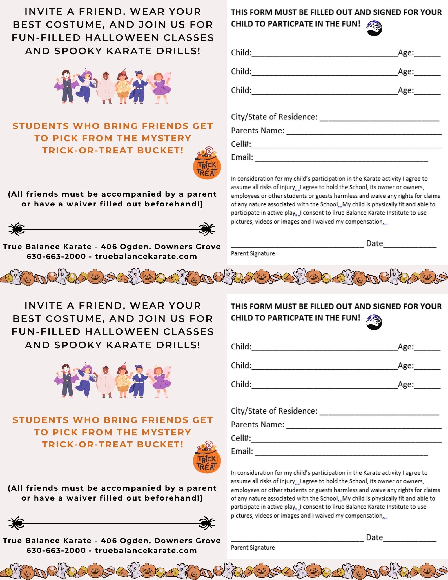 - Next week is Halloween Buddy Week! Ask your buddy to join you in class and have them fill out a waiver. Remember, the waiver is their attendance card for class.
